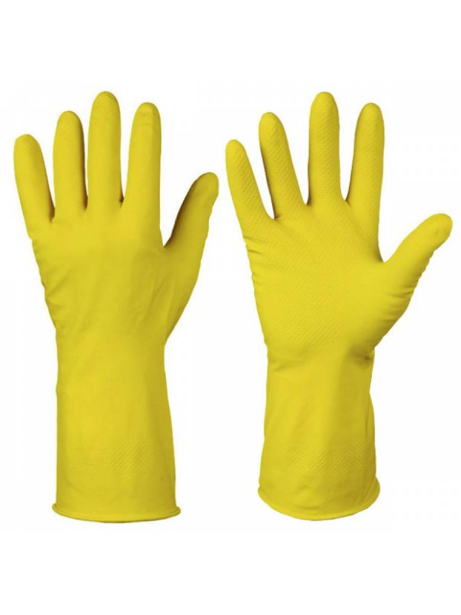 Предназначены для защиты рук от влаги, грязи и различных моющих средств. Рифленая поверхность перчаток позволяет удерживать скользкие предметы. Перчатки обеспечивают комфорт и удобство в работе, устойчивы к воздействию бытовых химикатов. Размар L цвет желтый.