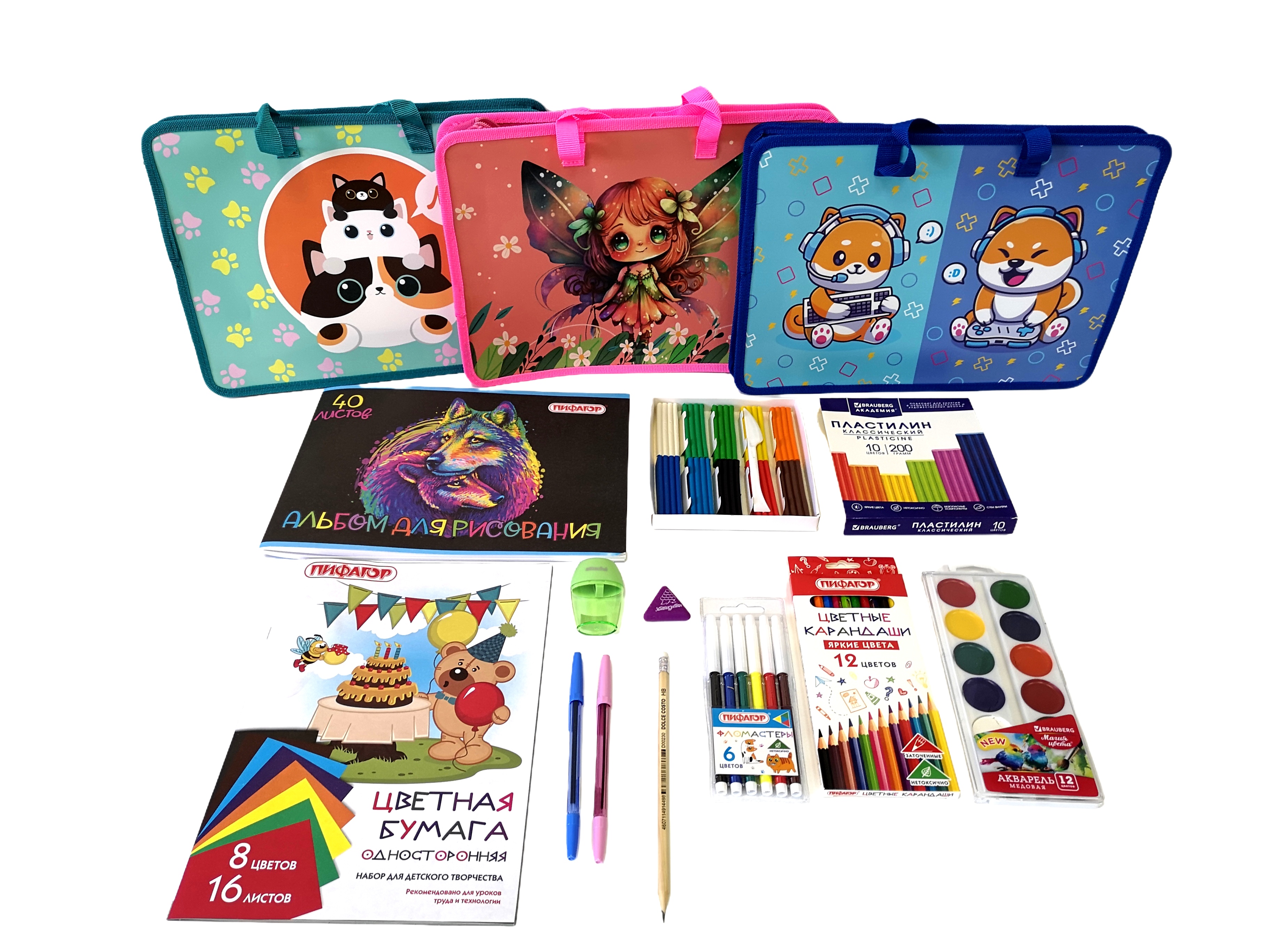 Также есть возможность собрать полный набор со всем необходимым набором канцтоваров для мальчиков и девочек стоимостью от 42 рублей на 40 предметов.
