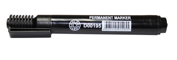 Перманентный маркер Dolce Costo заправлен черными чернилами на спиртовой основе. С помощью этого маркера можно делать надписи практически на любых видах поверхностей.