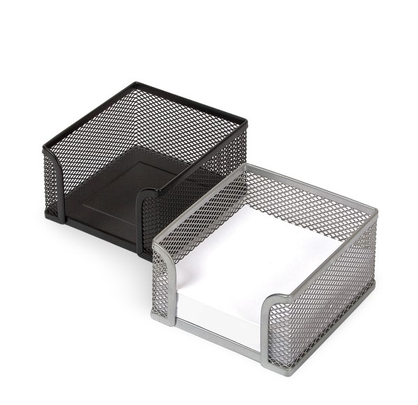 Подставка для бумажного блока, изготовлена из перфорированного металла сетка 9,7*9,7*5,5 см FOROFIS черная (91304) и серебристая (91305)