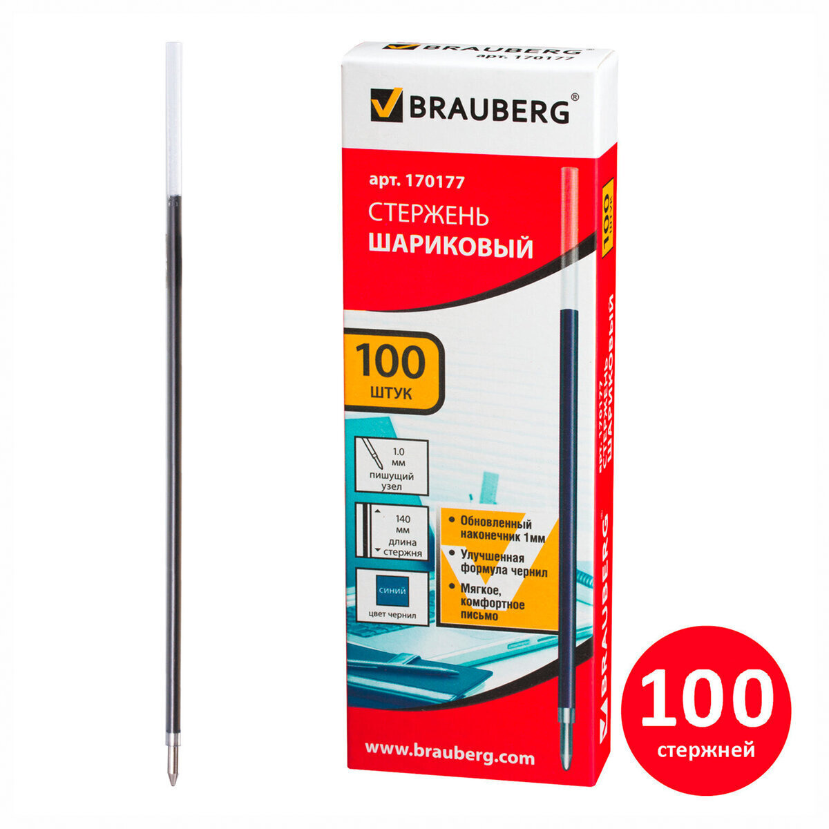 Стержень шариковый BRAUBERG 140 мм, СИНИЙ, узел 1 мм, линия письма 0,5 мм, (170177)
