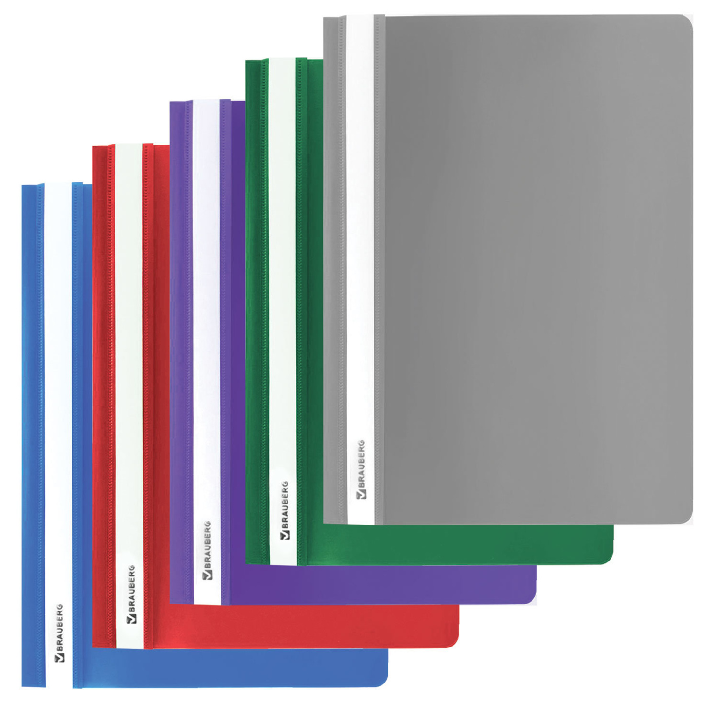 Папка скоросшиватель пластиковый BRAUBERG, А4, 130/180 мкм ассорти (22038)