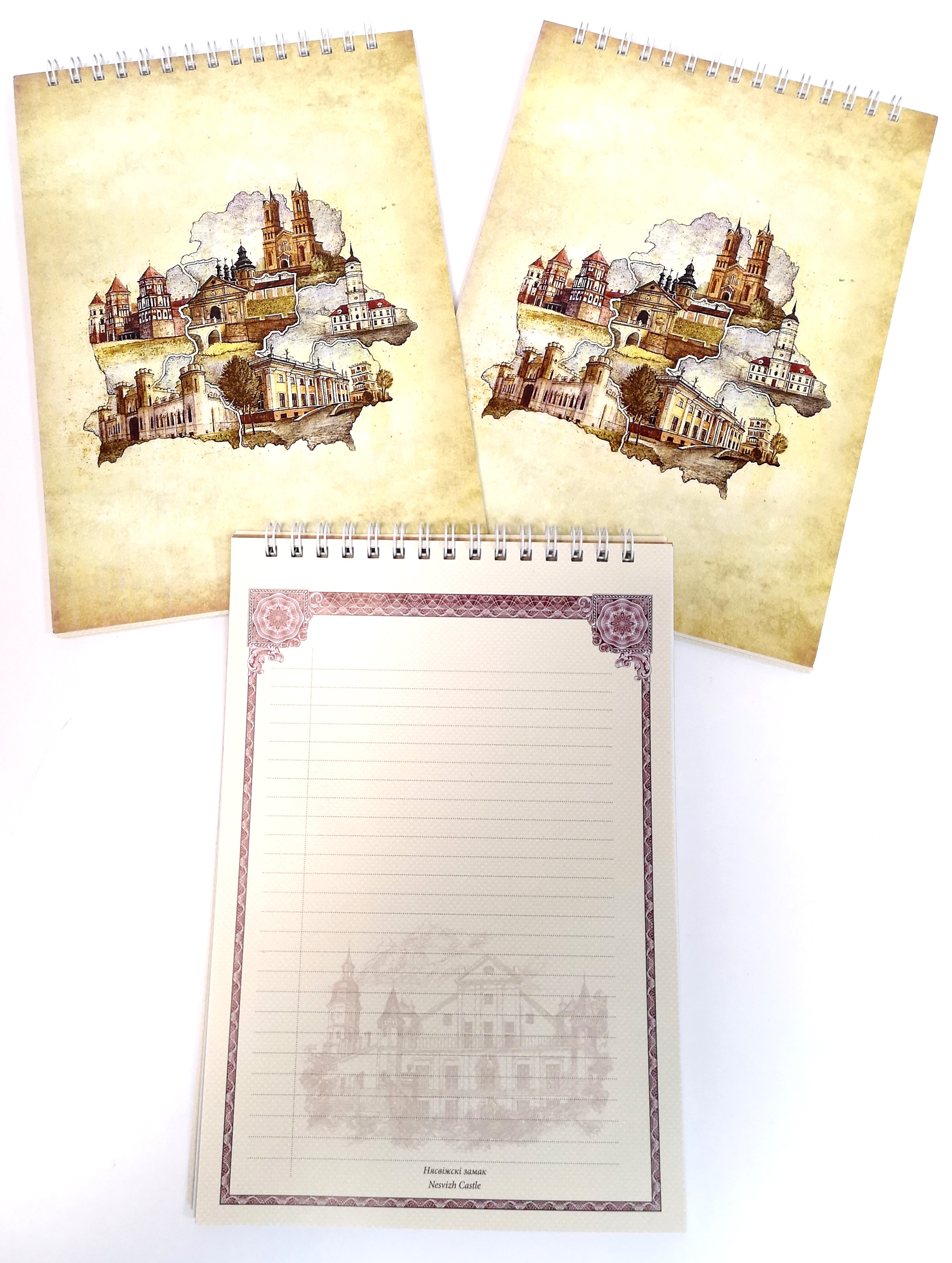 Блокнот А5 на спирали "Белорусское зодчество" 40 листов (VBBLA5BL40). Состав блока - мелованная бумага 80г/м2 с изображениями белорусских замков и дворцов, обложка выполнена из Прочного картона с изображением белорусских достопримечательностей.