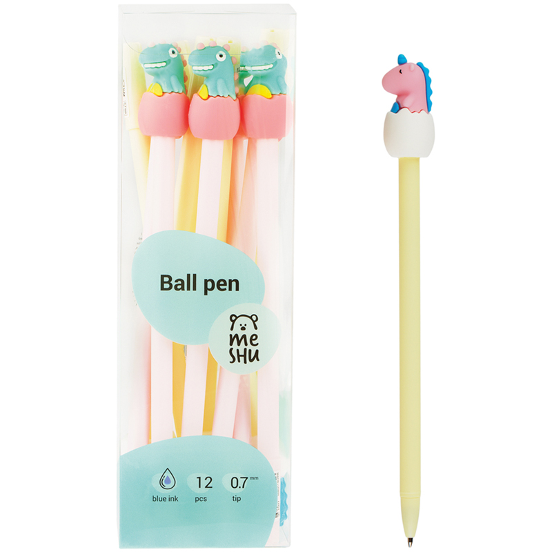 Шариковая  ручка MESHU станет атрибутом отличного настроения на работе или учёбе.  Стильный корпус ручки дополняет милая игрушка. Диаметр пишущего узла:  0,7 мм. Ручка подойдёт для мягкого и быстрого письма. Ручка MESHU не  имеет кнопочного механизма, но обладает пластиковым колпачком. Это  говорит о надёжности и безопасности изделия – стержень не повредится в  сумке и не оставит следов на посторонних предметах. Благодаря чернилам  синего цвета ручку можно использовать в работе или учёбе на постоянной  основе. Чернила сменные, что говорит о долговечности изделия.