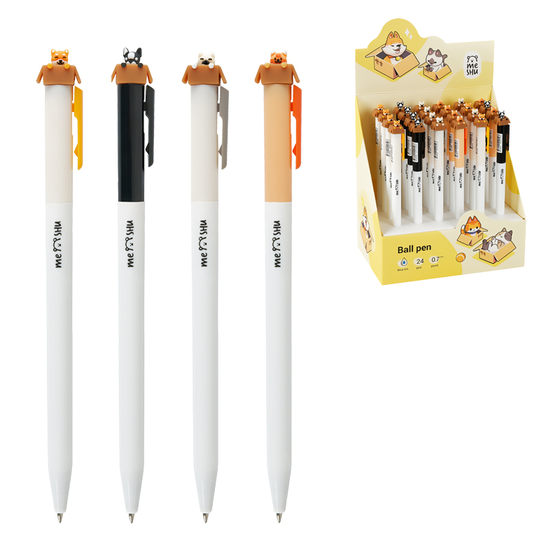 Ручка шариковая автоматическая MESHU "Meow&Woof", синяя, 0,7мм, корпус ассорти, с топпером (MS_42510)