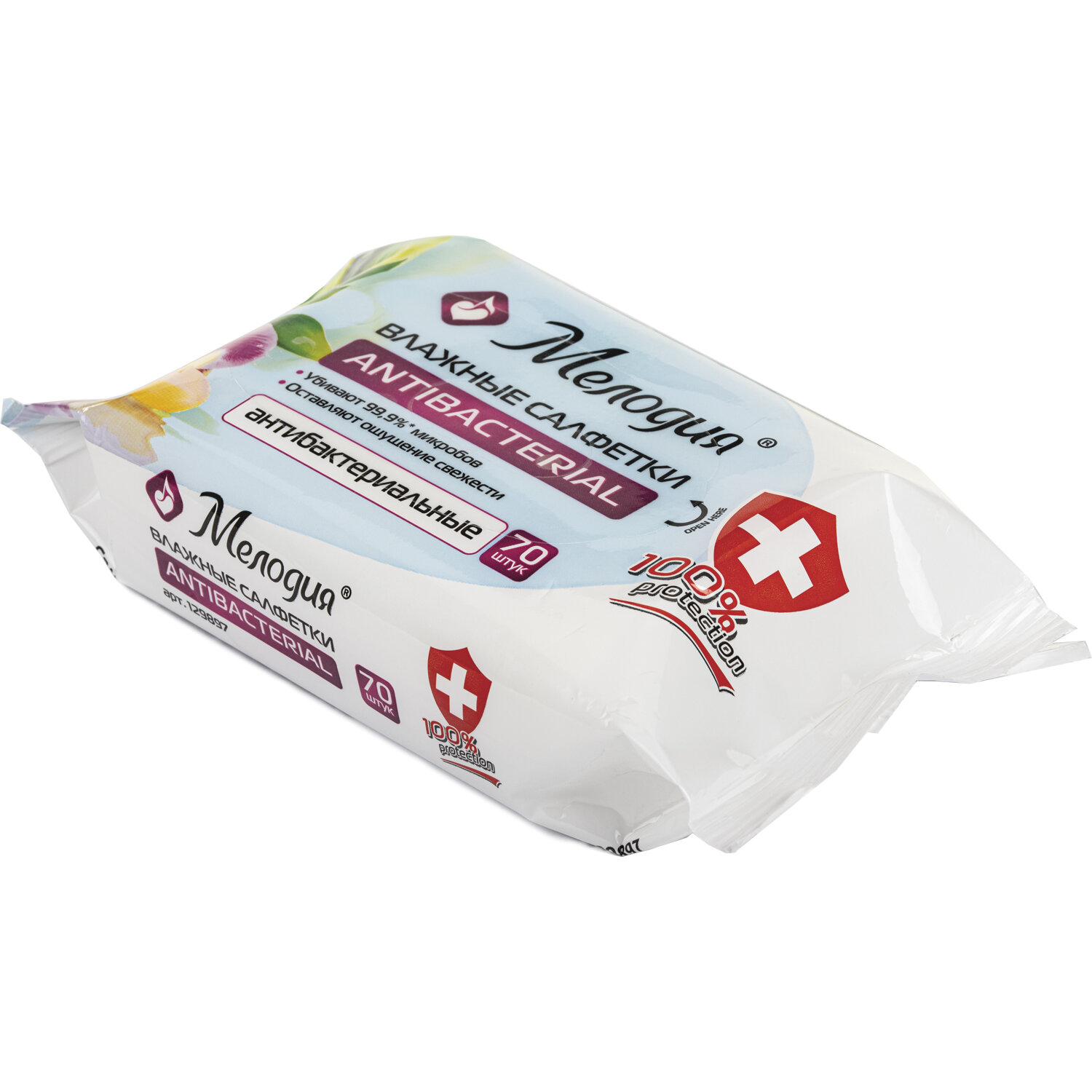 Салфетки влажные 70 шт., АНТИБАКТЕРИАЛЬНЫЕ, МЕЛОДИЯ, (129897)