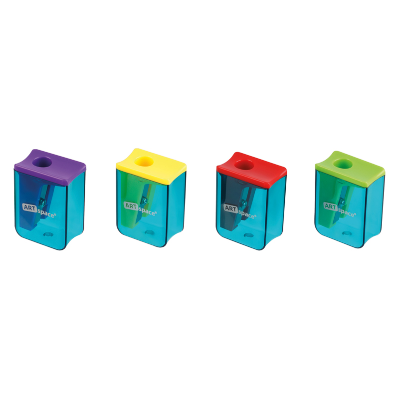 Точилка пластиковая "Case", 1 отверстие, с контейнером, ассорти ArtSpace (SR_44527)