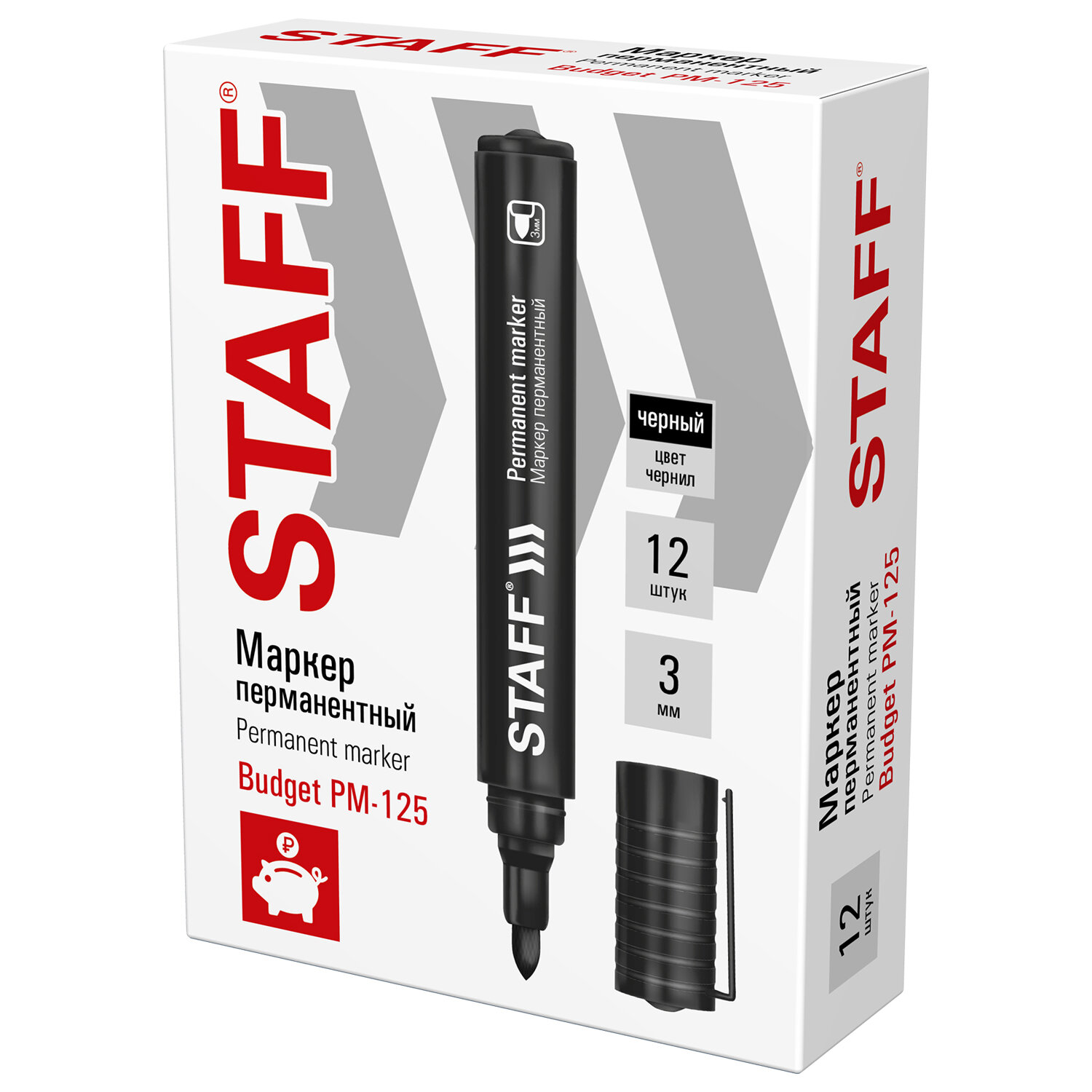 Маркер перманентный "Basic Budget PM-125", ЧЕРНЫЙ, круглый наконечник 3 мм, STAFF (152174)