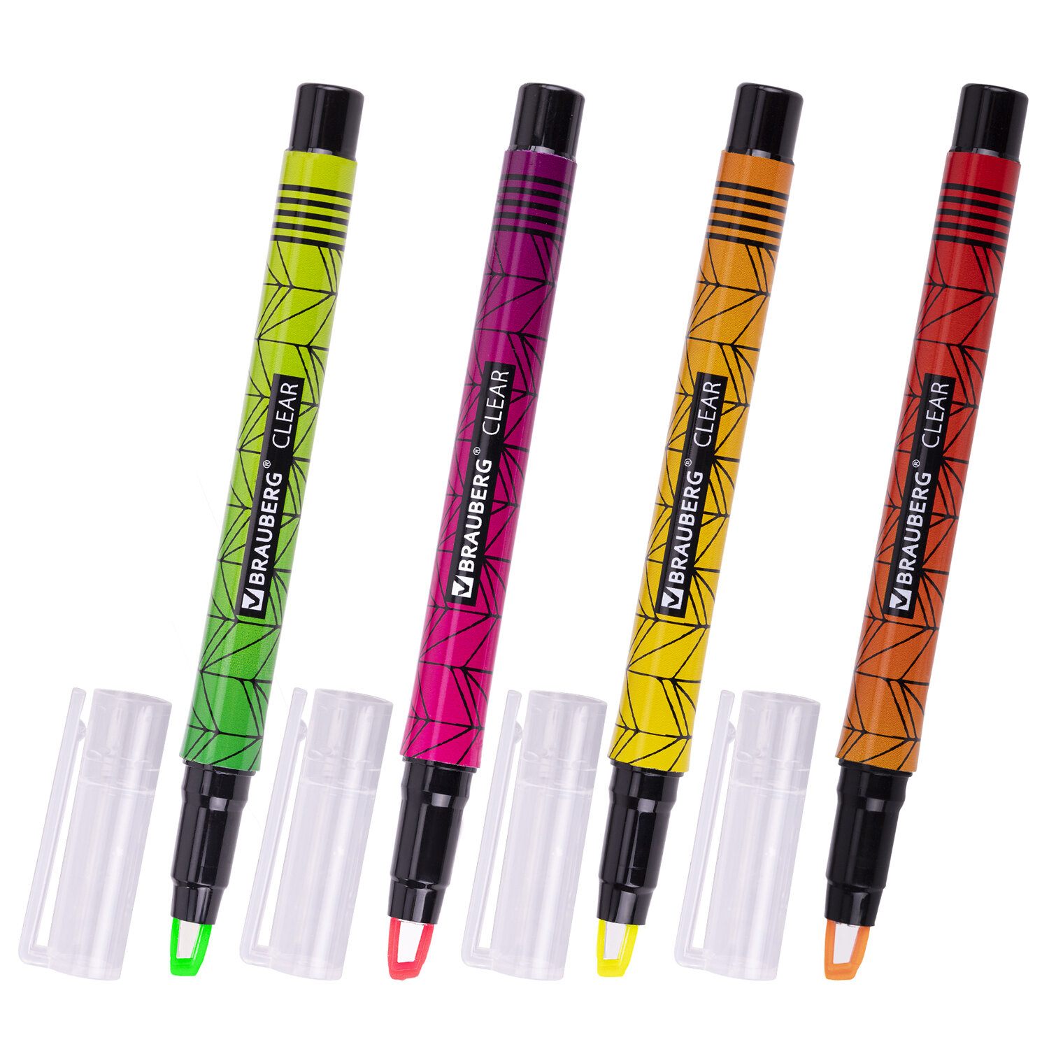 Набор текстовыделителей с прозрачным наконечником 4 ЦВЕТА, "Clear", линия 1-5 мм, BRAUBERG (152426)