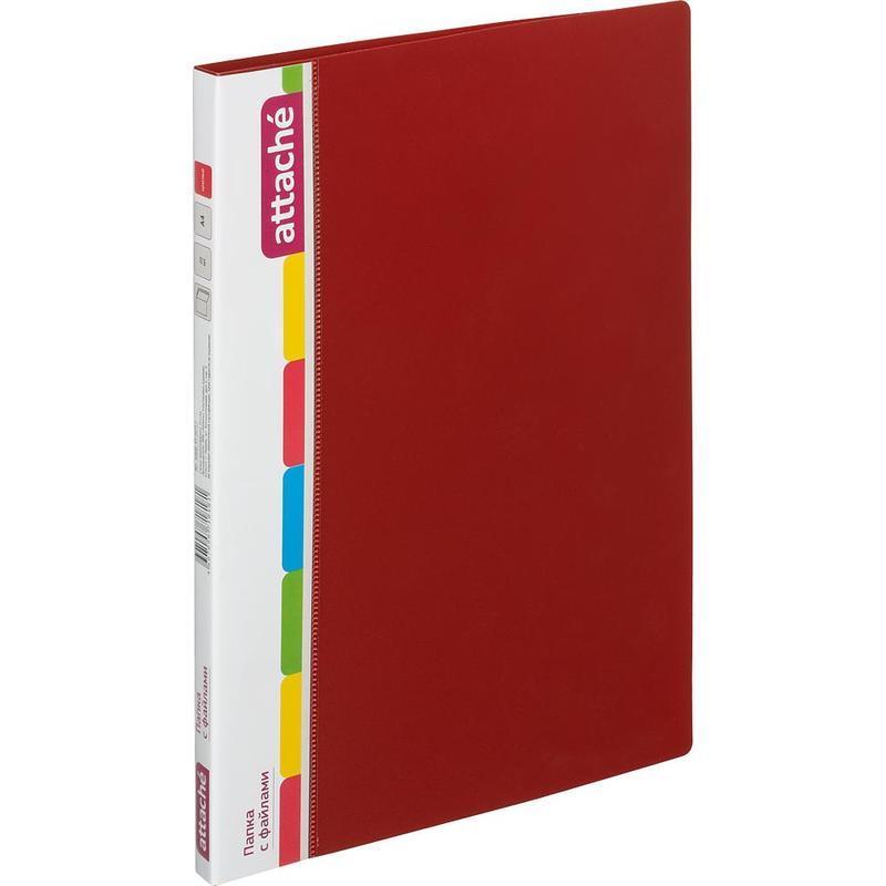 Папка с файлами Attache предназначена для хранения материалов и документов формата А4, требующих упорядоченности и наглядного обзора: отчетов, презентаций, коммерческих и персональных портфолио. Изготовлена из пластика толщиной 0,7 мм красного цвета, имеет 40 прозрачных вкладышей, а также карман на корешке для сменной этикетки. Вмещает до 80 листов стандартной плотности. Преимуществом файловой папки является надежная сохранность документов в отличном состоянии без предварительной перфорации. Плотность файлов 25 мкм.