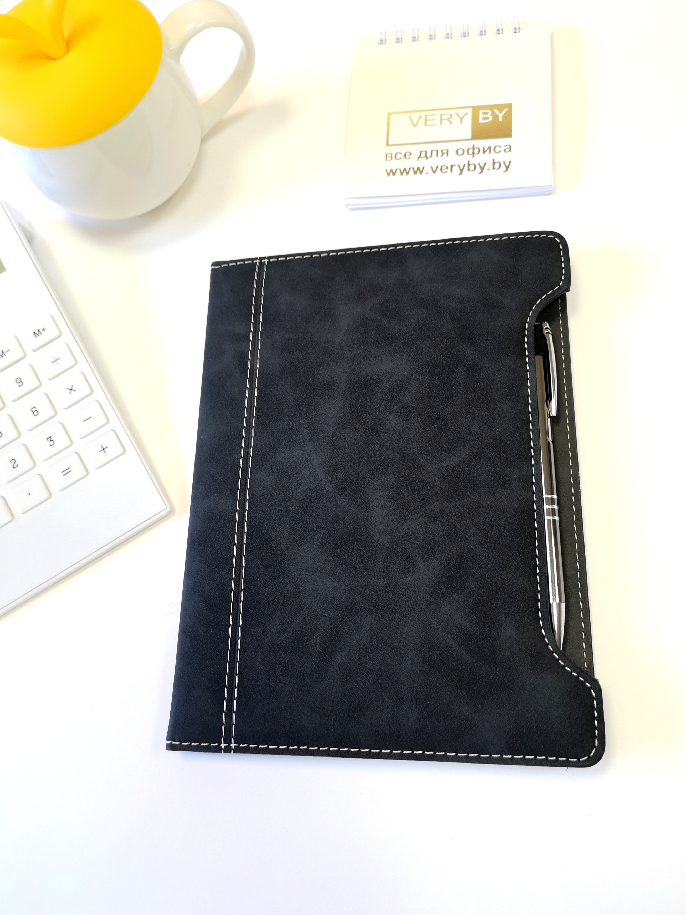 Дополнением являются держатель для ручки и закладка-ляссе, с помощью которой при необходимости можно быстро открыть нужную страницу. Формат блокнота А5 (165х218 мм) позволит владельцу поместить его в кейс или сумку малых габаритов.