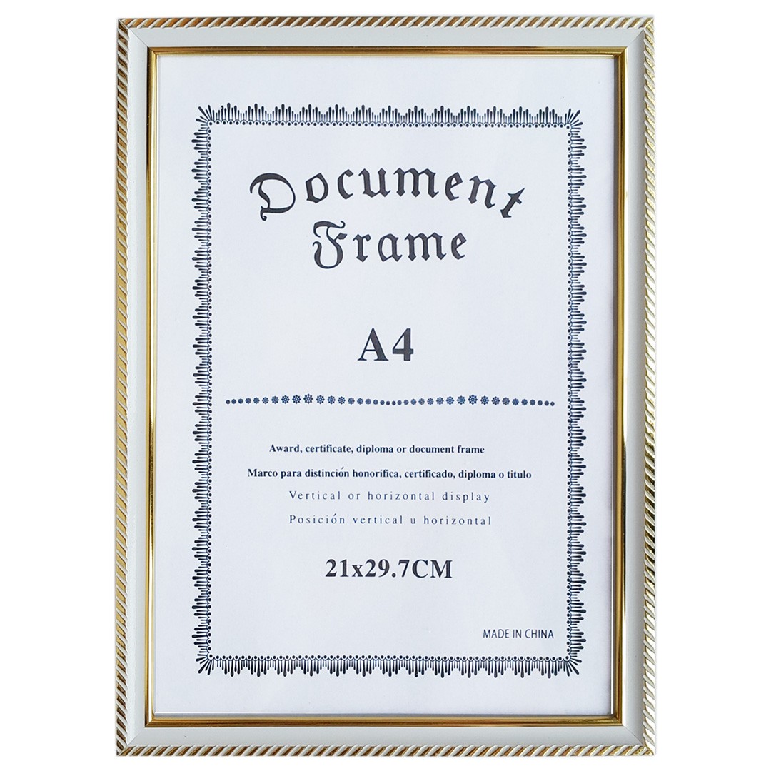 Рамка пластиковая А4 со стеклом 21х29.7, белая с двойной позолотой (109-2)