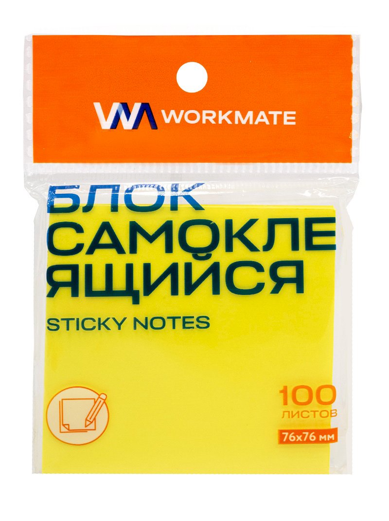 Стикер самоклеящийся, 76х76 мм, неоново-жёлтый, 100 листов, Workmate (14-8341)