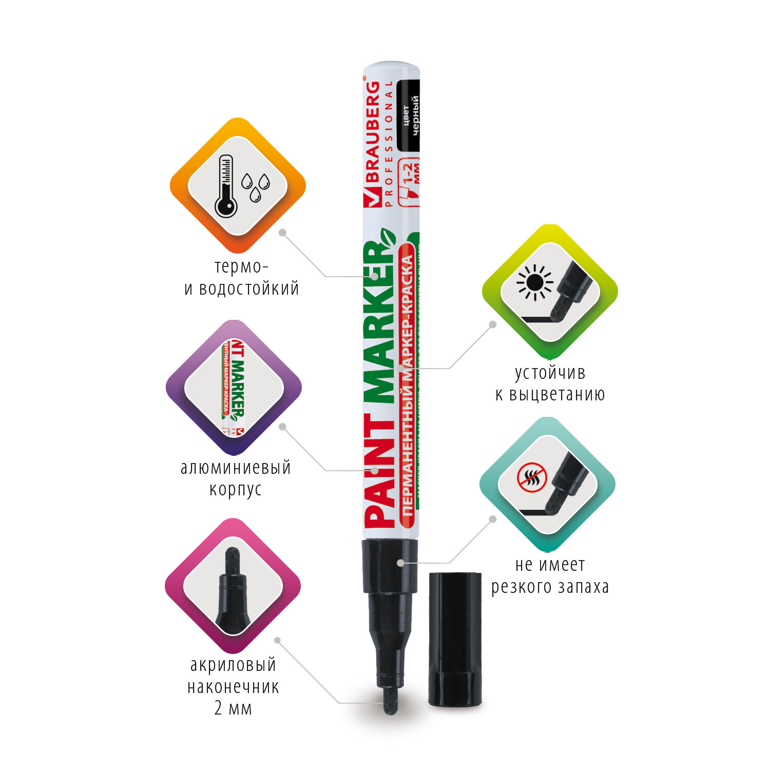 Маркер-краска лаковый BRAUBERG - незаменимый помощник для нанесения на разные типы поверхностей. Выгодная цена, практичность и универсальность - приобретайте маркер-краску BRAUBERG и оцените его надежность и удобство использования!