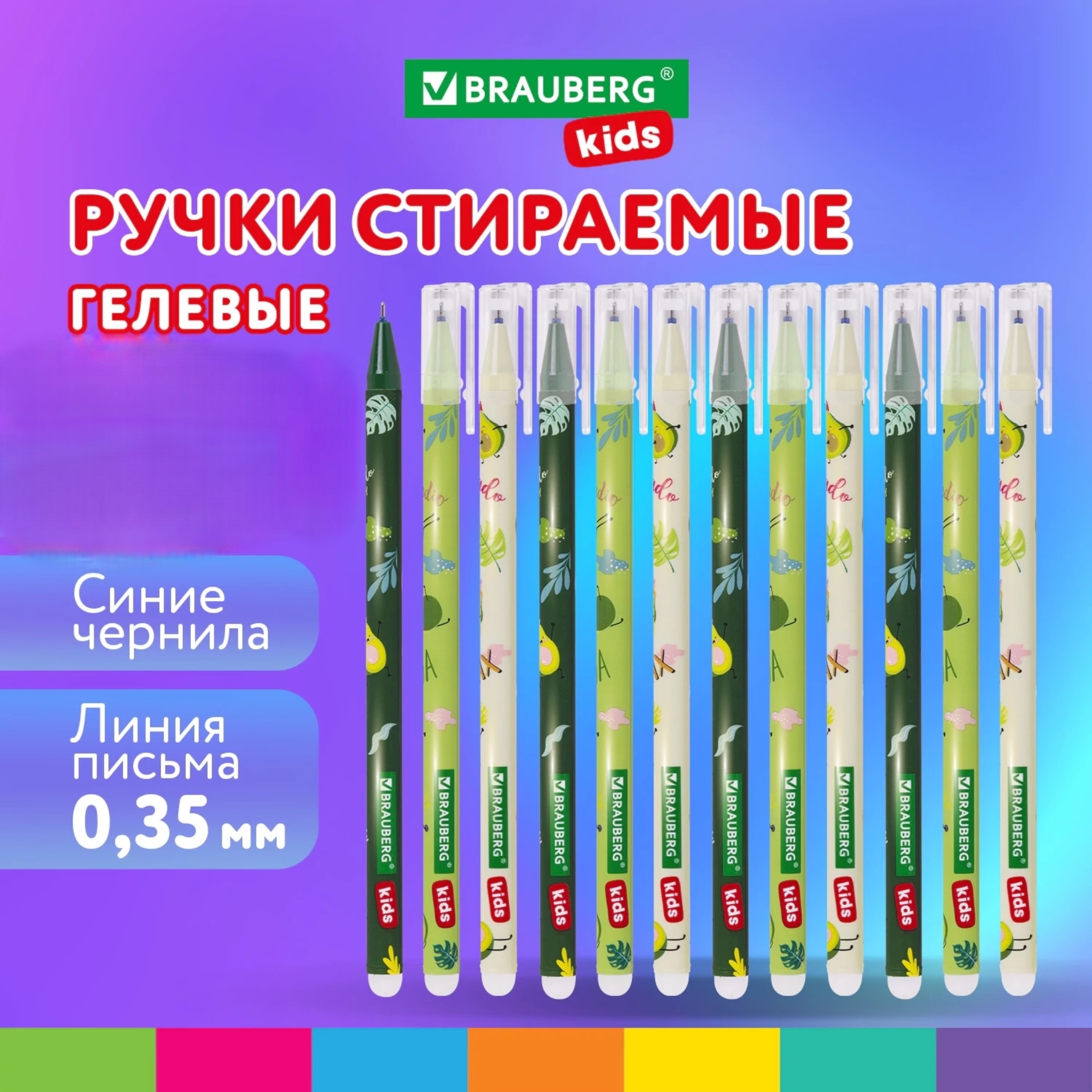 Стираемые гелевые ручки BRAUBERG KIDS "AVOCADO" обладают уникальным сочетанием ярких обесцвечивающихся термочернил, стильного дизайна и высочайшего качества исполнения.