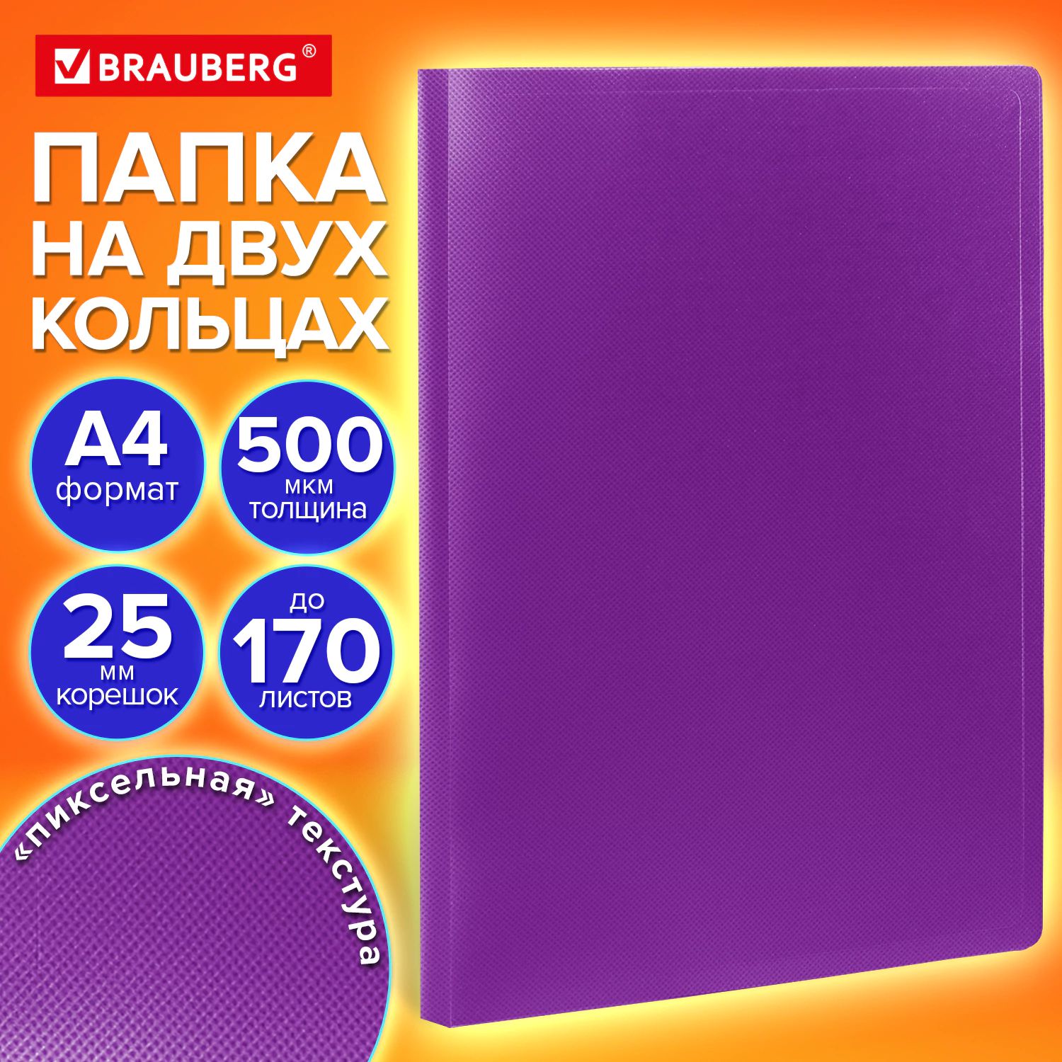 Папка на 2 кольцах А4 PIXEL, 25 мм, фиолетовая, до 170 листов, 0,5 мм,BRAUBERG (273035)