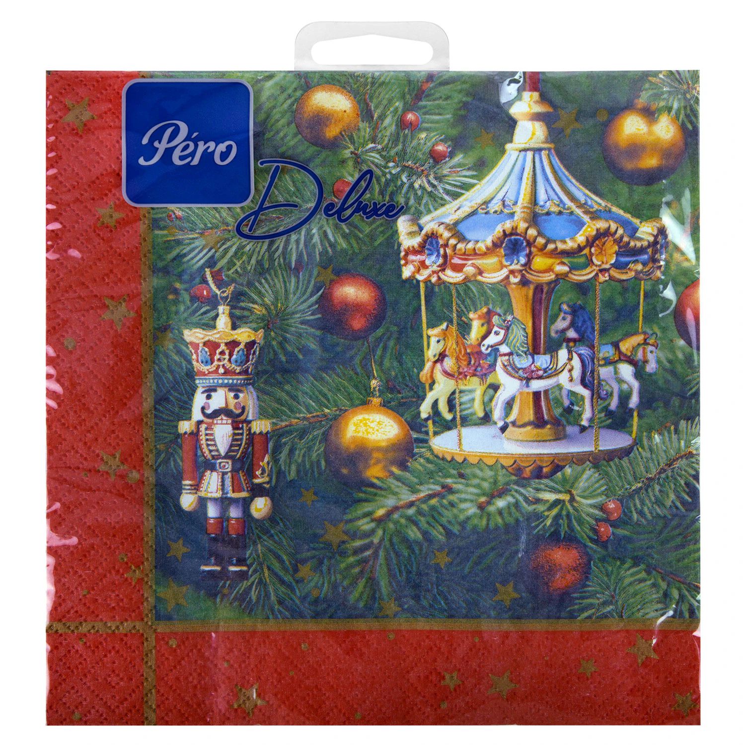 Салфетки бумажные 20 шт., 33х33 см, "Новогодняя карусель", 3 слоя, европодвес, GrandPero Deluxe (2869)