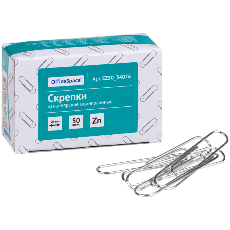 Скрепки 50мм, 50шт./уп., оцинкованные OfficeSpace (CZ50_34076)
