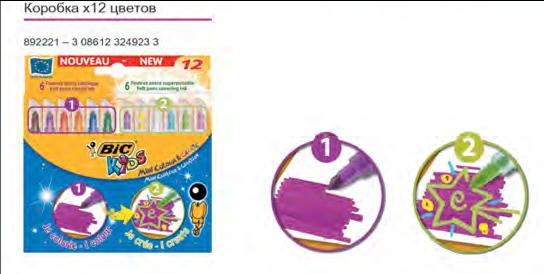Набор фломастеров 12 цветов. Волшебные фломастеры (Magic Pen) Мини Рисуй и твори BIC (Франция). Миниатюрные цветные фломастеры. 6 фломастеров классических цветов, 6 -  со специальными чернилами для создания креативных эффектов.Чернила  смываются с большинства тканей, вентилируемый колпачок.